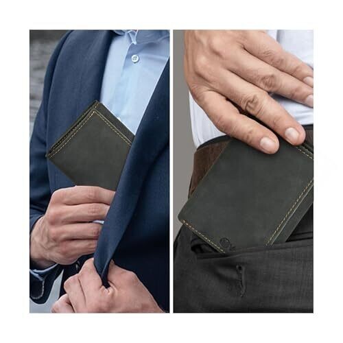 • Genuine hand-crafted leather wallet designed for men, offering a slim, stylish silhouette with a soft, durable feel.
