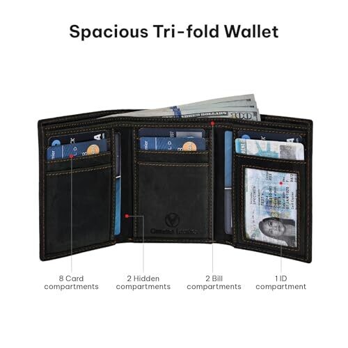 • Compact tri-fold construction with practical organization for cards, IDs, and currency without bulk.