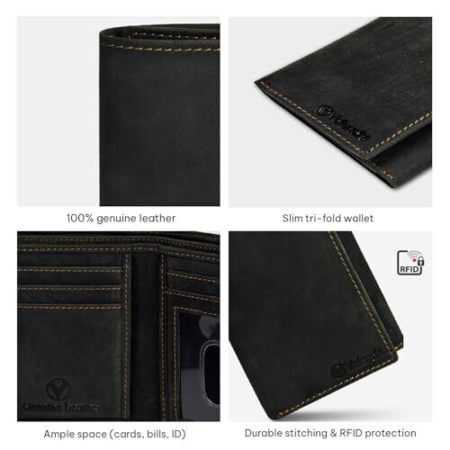 • Black Hunter Genuine Leather RFID Blocking Slim Trifold Wallet for Men - Slim