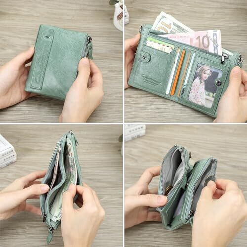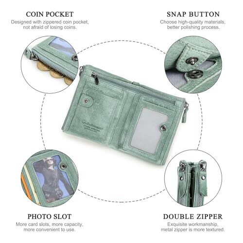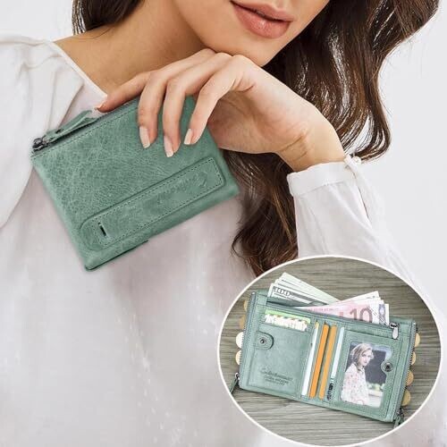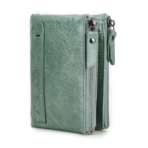 - CONTACTS Soft Leather Wallet for Women and Men Small Bifold Coin Purse Double Zipper Card Holder RFID Blocking (Matcha Green) — a unisex accessory that blends luxury with everyday practicality.