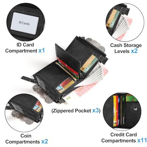 • 16-in-1 Organized Design featuring multiple compartments and a zip coin pocket for effortless daily essentials.