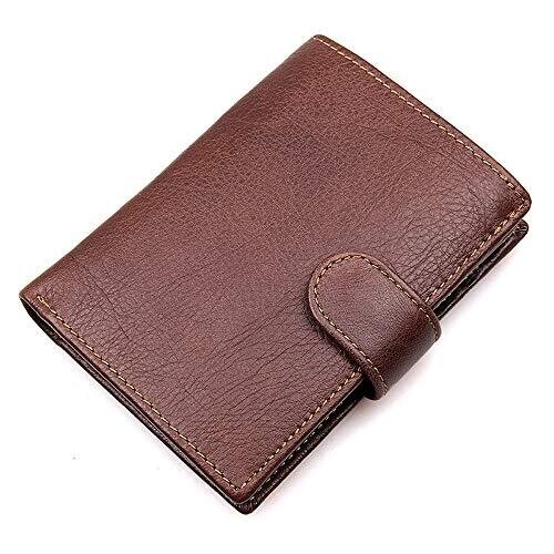 Genuine Leather Trifold Wallet RFID Blocking Zip Anti-Scan Coffee