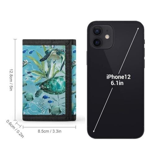 A Sea Turtle-Blue minimalist trifold wallet built with a durable nylon-polyester blend. Slim front-pocket design, RFID blocking, Velcro closure, and ample space for cards, ID, cash, and coins, suitable for men and women seeking secure, everyday organization.