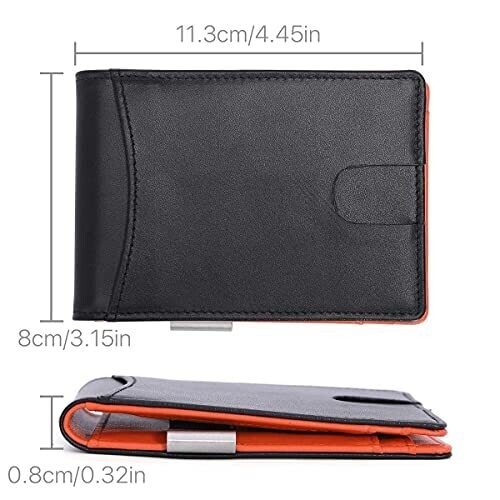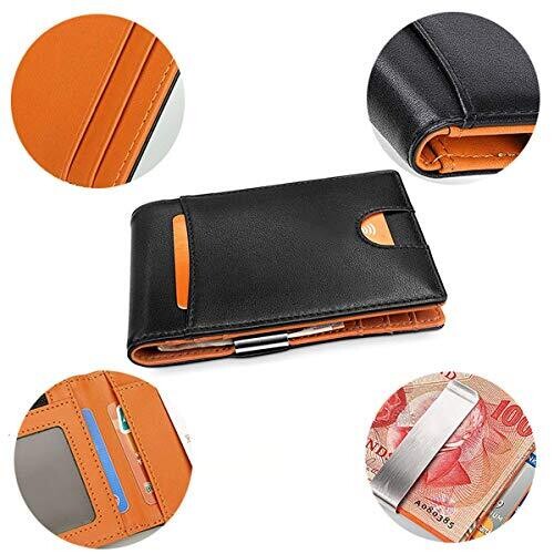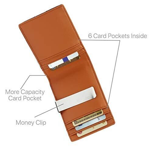 Experience premium everyday organization with a slim bi-fold leather wallet that blends style and security. It blocks RFID signals, holds 4–6 cards, and includes a convenient money clip for quick access to cash, all in a slim profile.