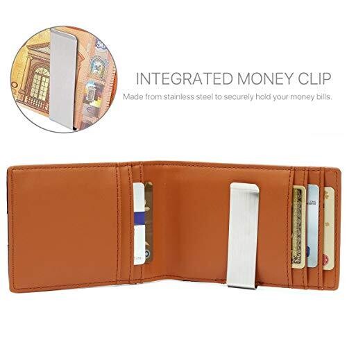 Genuine Leather Trifold Wallet RFID Blocking Slim Zip, 11 Card Slots