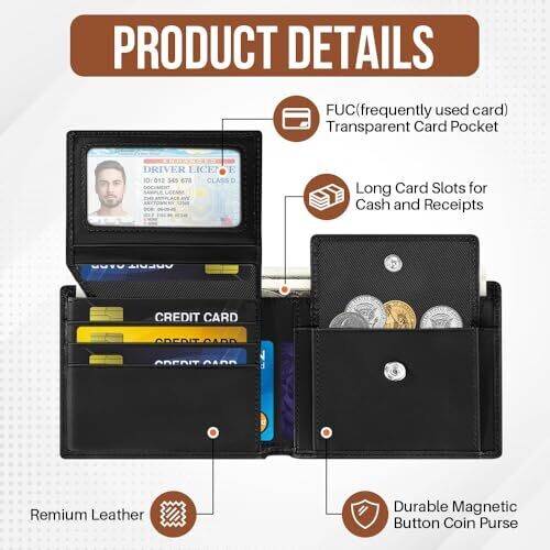 • Design: Minimalist, slim bifold style designed for daily use and easy organization of cards and cash