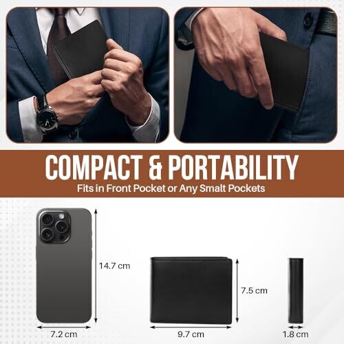 • Large Capacity: 9.7 × 7.5 × 1.8 cm (3.81 × 2.95 × 0.7 inches) with 1 coin pocket, 7 card slots, 2 bill slots, 2 hidden card slots and 1 flip ID window