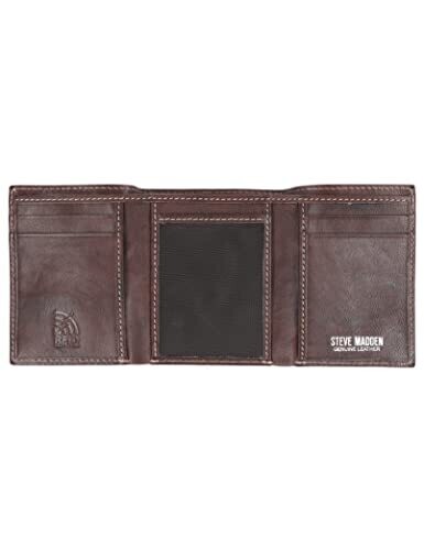 - Steve Madden Men's RFID Trifold Wallet with Id Window in Brown (Antique) offers a sophisticated, fashion-forward accessory that protects your cards and ID while complementing any look.