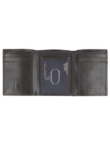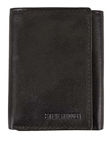 Steve Madden Men's RFID Trifold Wallet in Brown combines premium leather with modern security. It blocks unauthorized scans, includes a mesh ID window, and organizes cards and cash in a slim, durable design ideal for everyday use.