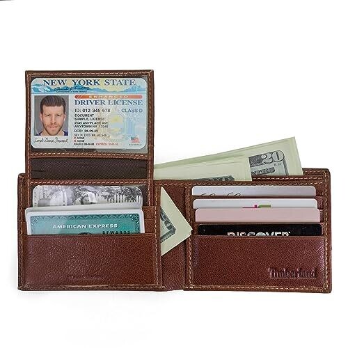 • Timberland RFID Blocking Passcase Wallet – Genuine Leather, Brown