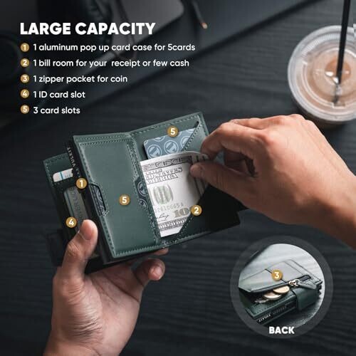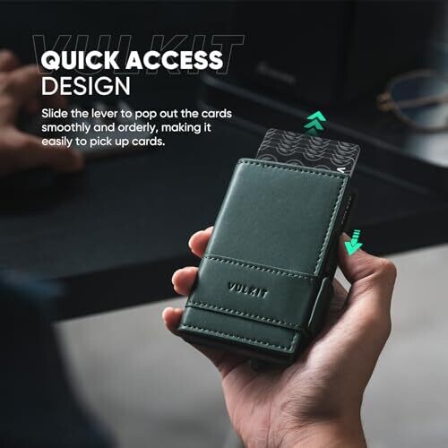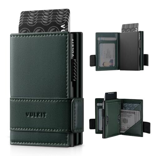 • VULKIT Card Holder Bifold Pop Up Leather Wallet for Men – RFID Blocking, 9 Cards, Green