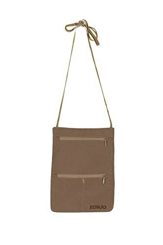 Korjo Money Pouch with RFID protection keeps your essentials organized and secure while traveling. Crafted from premium microfibre, it offers discreet shielding, 2 card pockets, an adjustable neck cord, and a large zippered main pouch that fits passports.