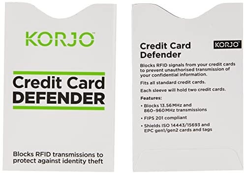 • Korjo RFID Credit Card Defender X3, White helps protect your cards from RFID readers by shielding them in sleeves for worry-free security.