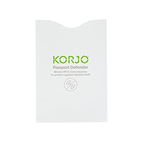 Korjo RFID Passport Defender X2 in white protects your passport from RFID skimming while traveling. The pack of two sleeves shields multiple passports, fits slimly in pockets, and offers convenient, secure protection for everyday adventures.