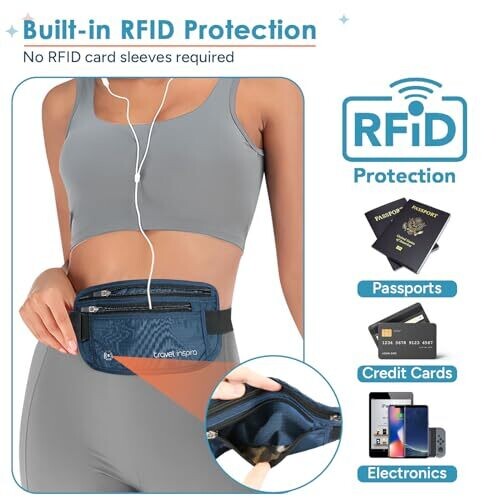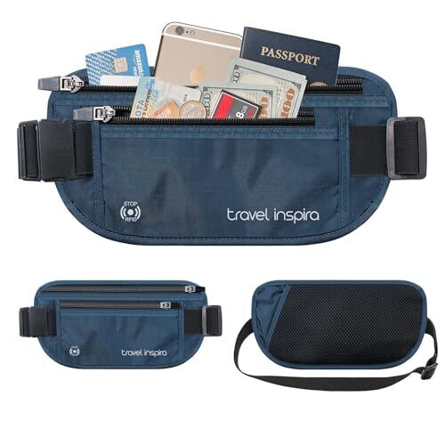 • Travel Inspira RFID Blocking Money Belt with Anti-Theft Zip – Slim Passport Pouch