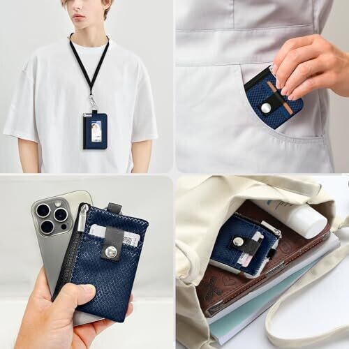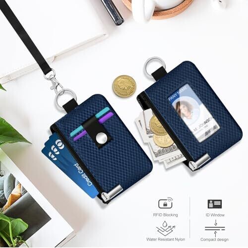 Meet the CCUMI Minimalist RFID Blocking Small Wallet with ID Window in Dark Blue, a sleek, travel-ready carry that fits cards, cash, and essentials. Durable water-resistant nylon, two zippered compartments, ID window, and a included lanyard for versatile wear.