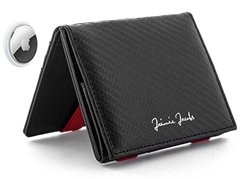 Jaimie Jacobs Flap Boy AirTag Magic Wallet Genuine Leather Men (Carbon with Red)