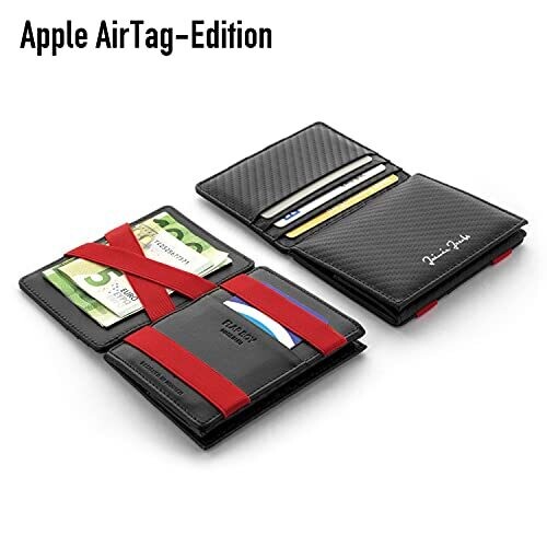 AirTag pocket, magic flap mechanism, RFID protection, large coin pocket.