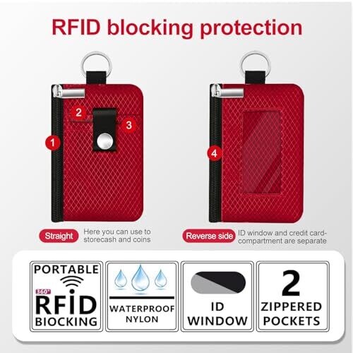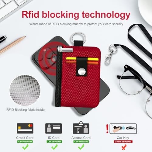 - Minimalist design with RFID blocking protection to safeguard cards and IDs, available in bold Red.