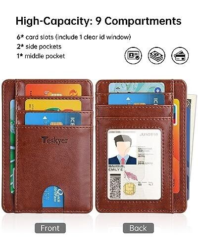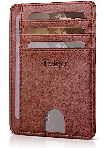 • Teskyer Slim Wallet – RFID Blocking Front Pocket Leather Card Holder for Men
