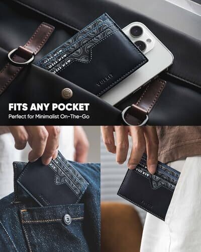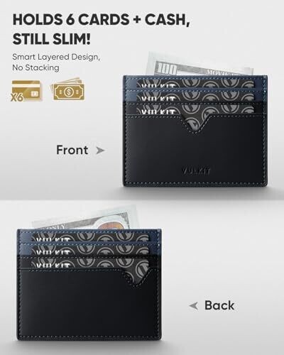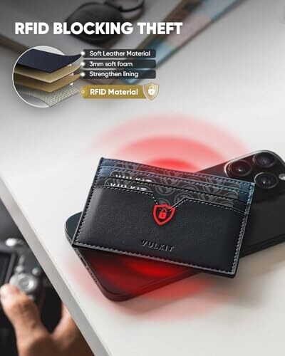 • VULKIT Slim Minimalist Wallet for Men offers a sleek, front-pocket friendly design that blends style with everyday practicality.