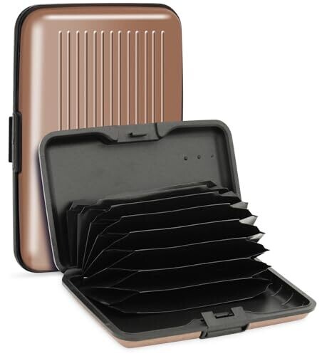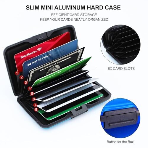 AeroGuard's aluminum RFID blocking wallet keeps your cards safe with advanced protection, in a ultra-slim, lightweight frame. It offers 8 card slots plus a built-in money clip, blending durability with modern style for travel or everyday use.