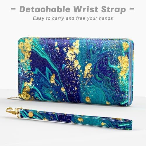• Aiawoxc Womens RFID Wristlet Wallet - Ocean Marble Bohemian Look
