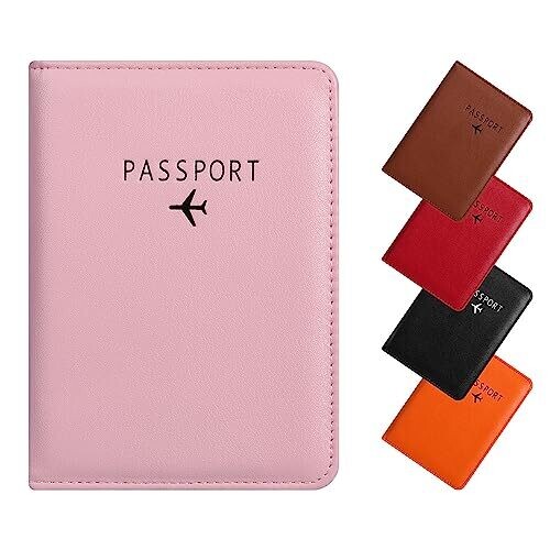 Stylish pink PU leather passport cover that protects your essentials with RFID blocking. Features multiple pockets for passport, boarding passes, tickets, and cards, plus a secure pocket layout for easy travel organization and durable everyday use.