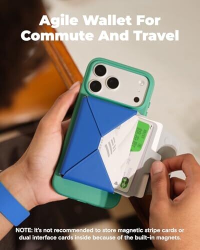 The MOFT Magsafe Wallet is designed as a modular card holder aligned with origami-inspired construction that unfolds into a flat storage platform. The wallet weighs 1.8 ounces and is compatible with MagSafe-enabled iPhones (iPhone 12 through iPhone 17 series) and MagSafe cases; for other phones, pairing with a MOFT magnetic ring is possible. It supports storage for up to eight cards (e.g., ID, credit, insurance, SIM PIN) and includes an integrated RFID-blocking shield to protect against electronic pickpocketing. The wallet is crafted from MOVAS Vegan Leather, providing a soft feel, lasting color, and wear-resistant surface. The product is offered in six colors and is designed for on-the-go use, including a quick-access side slot for rapid card retrieval. The design emphasizes portability, detachability, and a balance of form and function for both men and women.
