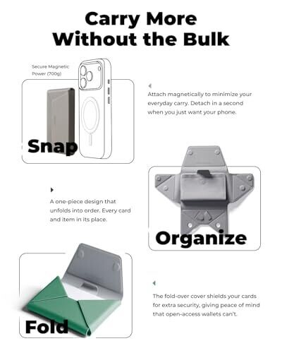 • Lightweight and portable at just 1.8 oz, attaching magnetically to minimize everyday carry and offering easy detachment when you need your phone solo.