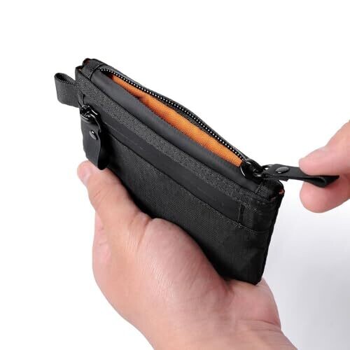 • Holds 6–10 cards, folded cash, and coins without adding bulk, crafted from durable sailcloth nylon for water resistance and everyday toughness.