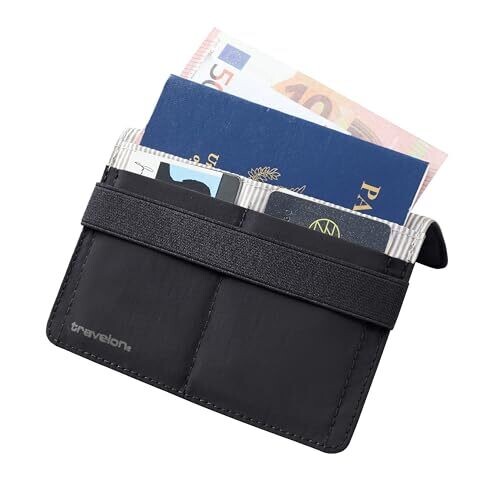 Travelon’s RFID Blocking Flap Passport Holder keeps your passport, cards, and cash organized while shielding them with a 360° RFID barrier. Slim, hands-free design fits pockets or bags, with multiple slots and a secure flip-front strap.