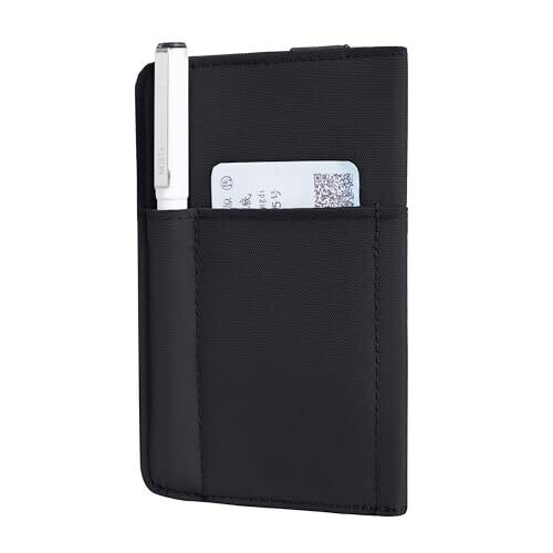 • Smart organization inside and out: passport and currency slot, card slots, rear slot, and pen slot for quick access.