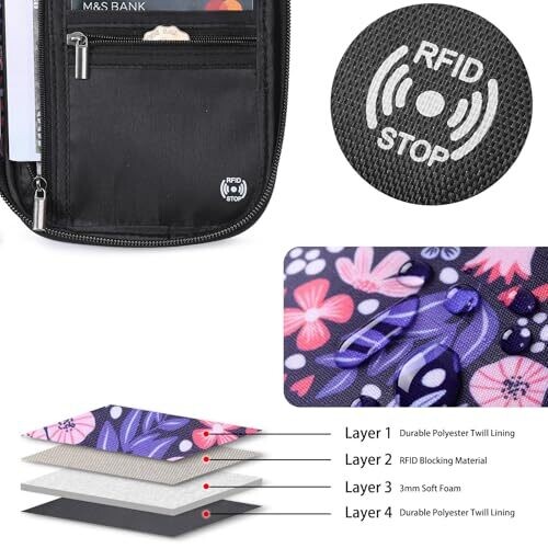 RFID blocking technology designed to prevent scanning of passports and credit cards (13.56 MHz); note that some IDs and access cards operating at other frequencies may not be blocked.