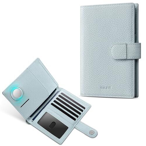 • VULKIT Dual Leather Passport Wallet with Airtag Holder – Slim RFID Travel Wallet for Women Or Men