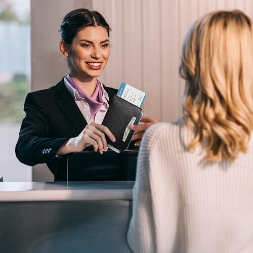 Experience a sleek, ultra-slim passport sleeve that fits discreetly in pockets or small bags. It organizes a passport, boarding pass, cash, and cards, while RFID-blocking technology protects your information on international trips and business travel.
