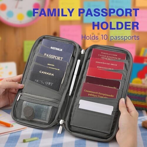• WALNEW Passport Holder Family for 10, RFID Passport Holder Travel Wallet and Document Organizer Passports, Travel Essentials (Gray) is designed for families and group travel, delivering a coordinated solution that keeps all travel documents organized in one place.