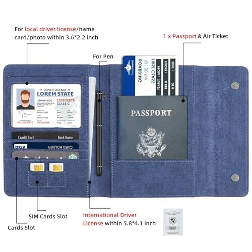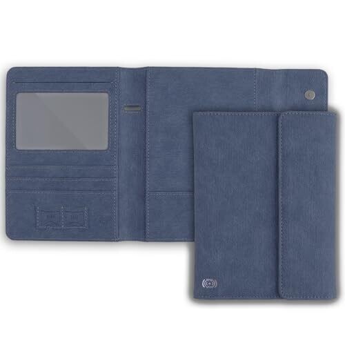 WALNEW passport holder in denim blue with RFID blocking protection, protects your passport and documents. PU leather cover, compact, durable travel wallet for essentials such as cards and tickets, ideal as a stylish, secure travel companion.