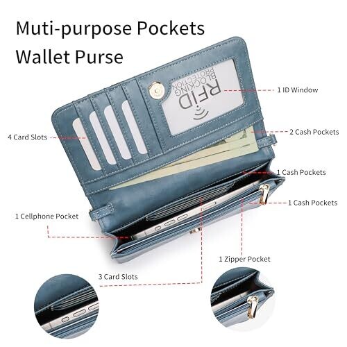 ANFUMAN Crossbody Bag for Women — RFID Wallet, Blue, Multi-Function