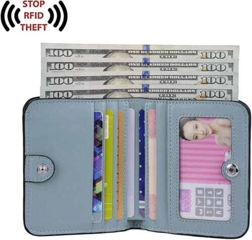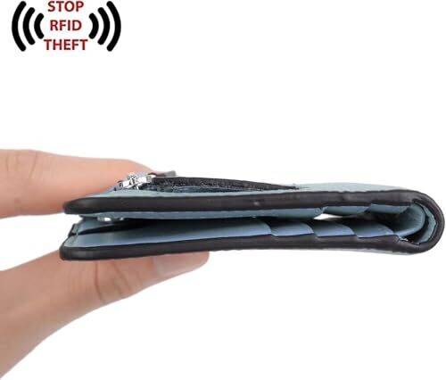 • Brand Lake Blue Ultra-Thin RFID Wallet for Women: Sleek Leather Minimalist