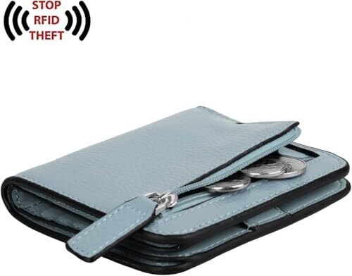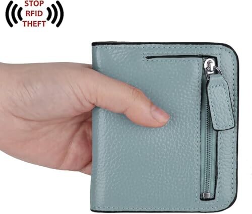Ultra-thin, lightweight leather wallet with RFID protection that keeps essentials secure. The Lake Blue compact design fits pockets or small purses, elevating everyday style while offering durable, practical organization for modern women.