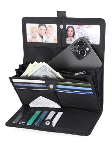 • Meet the Mundi File Master Women’s RFID Blocking Wallet Clutch Organizer With Change Pocket in Black—where fashion meets smart functionality.