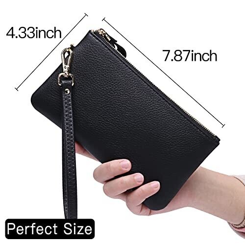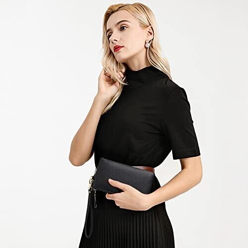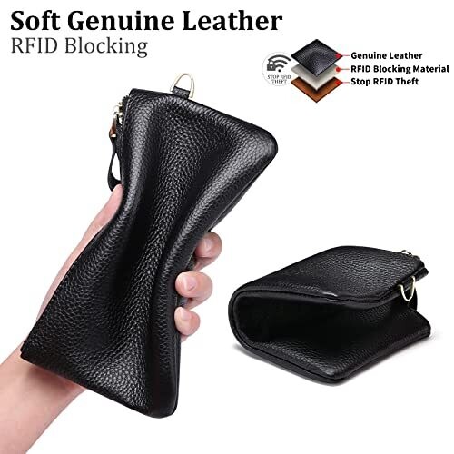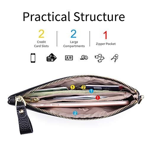 • SENDEFN Genuine Leather RFID Wristlet & Clutch with Zip Pocket & Coins