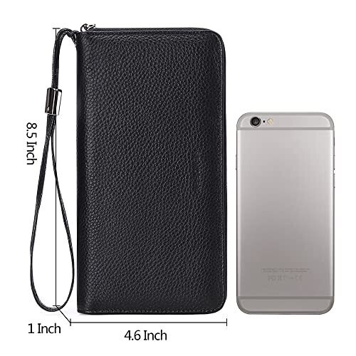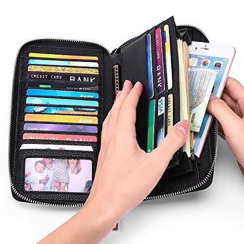 SENDEFN Genuine Leather RFID Wristlet & Clutch with Zip Pocket & Coins