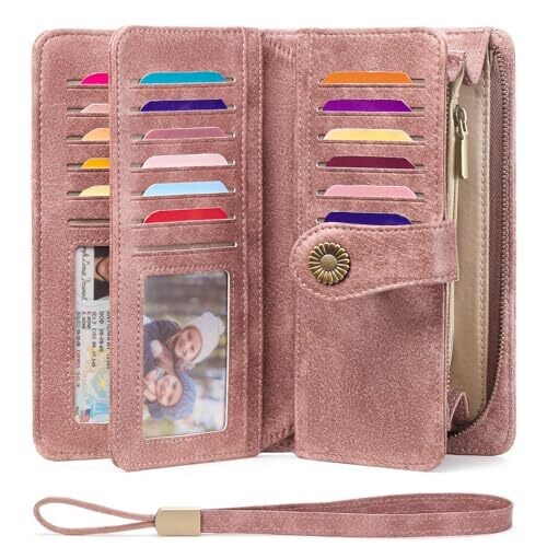 • SENDEFN Women's Leather Wallet Large Clutch with RFID - 24 Card Slots