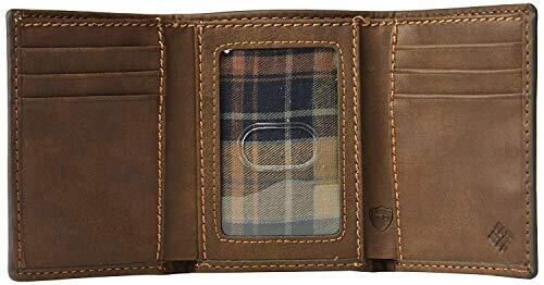 Columbia Men's RFID Genuine Leather Trifold Wallet with ID Window, Brown Casual