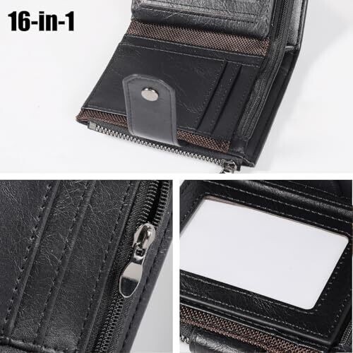 • DASKING Men's Wallet — RFID Blocking 16-In-1 Leather Bifold with Zipper Coin Pocket