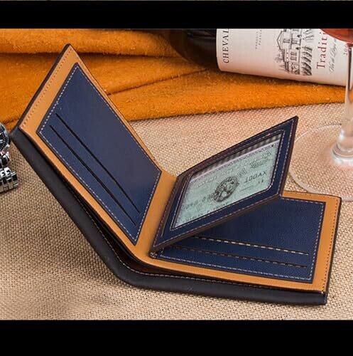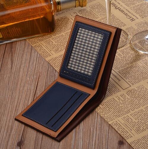 A slim, RFID-blocking bifold wallet crafted from durable PU leather in a stylish blue finish. It fits front pockets, offers multiple card slots and a billfold, and protects cards from unauthorized scans while keeping essentials organized.