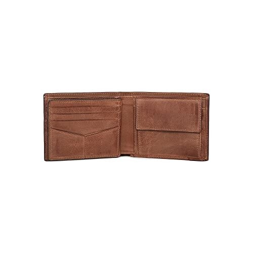 • Discover rugged style with Fossil's Derrick RFID Large Coin Pocket Bifold Wallet in brown, designed to complement every outfit and occasion.