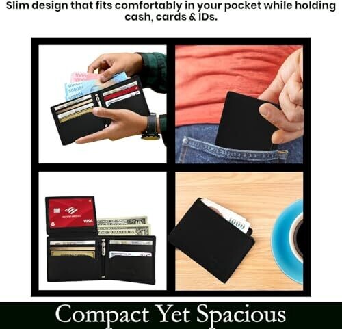 Yxvyxymyxxg Slim RFID Blocking Leather Wallet for Men - Bifold Card Holder